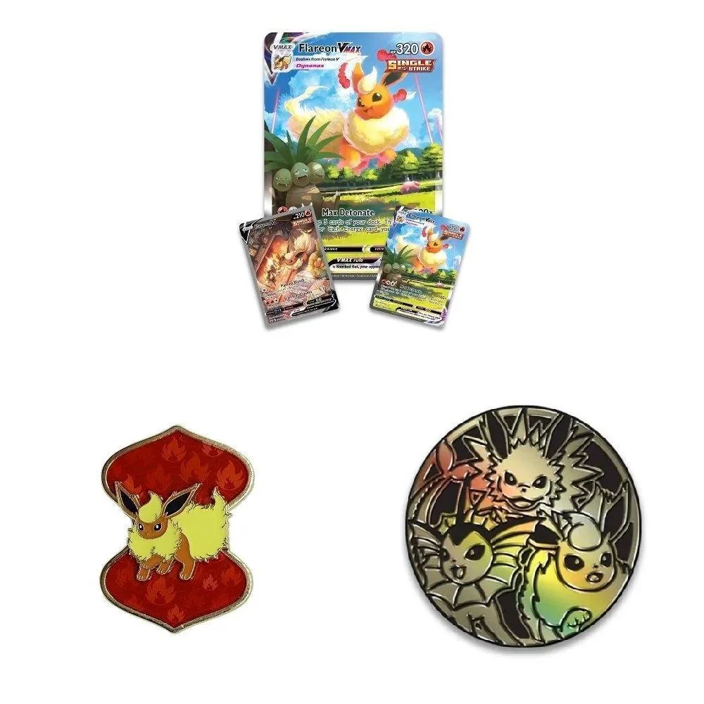 • 1 etched card featuring Vaporeon VMAX, Jolteon VMAX, or Flareon VMAX